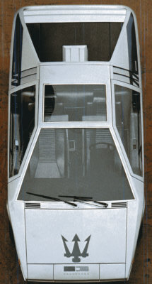 Maserati BOOMERANG 1972 ジュネーブショー ミドエンジンのマセラティ・シャシーを使った2シーター・スポーツ・モデル。 数理的な造形を試みている、ほとんど直線的な屈折したラインをモチーフとしているため、 "ブーメラン"(オーストラリア原住民が狩猟に用いる飛び道具)の名が与えられた。