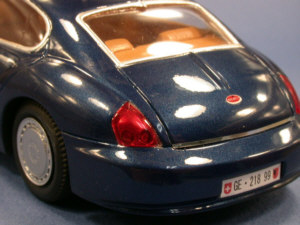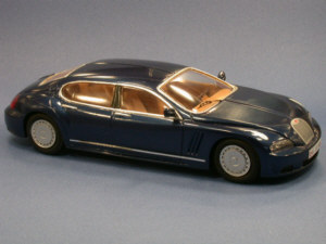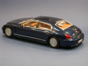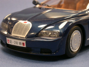 1999 Salone di Ginevra 98年パリ・ショーに展示されたEB118から進化した4ドア・サルーン。 ブガッティの基本スタイルテーマを継承しながらも、全長を325mm延長した4ドアセダンの姿で 安定感豊かなラグジャリークラスの落ち着いたスタイルを得た。 インテリアのイメージは118と大きく変わり、V型のセンターコンソールが特徴。 クラシックな高級家具を前にしているような雰囲気がある。