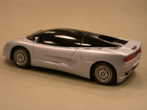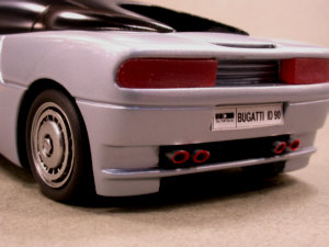 Begatti ID90 Italdesign 1990 Salone di Torino 1990 新生ブガッティ・アウトモビリによってEB110プロジェクトが動き始めている頃、 ジュジャーロとイタルデザインが公開したのがこのID90。 エクステリアのみのブラスターモデル。 ブラスターモデルの塗装はブガッティ伝統の薄いメタリック・ブルー、 アルミ製ホイールのリム・デザインは1926年のロワイヤルを連想させる。