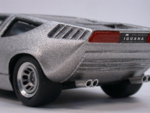 アルファロメオのレーシングカーT33のシャシーをてにいれ、 魅惑的なミドエンジン・2シーターGTをデザインした。 派手なスタイルとカラーリング(黒地にアルミのフレーク塗装)が目を引く。 "イグアナ"とは恐竜の生き残りの爬虫類の名前