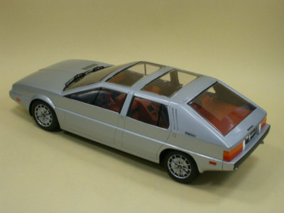 Maserati MEDICI U 1976 パリ・サロン 2年前のプロトタイプ"メディチT"をより現実的に改良したモデル。 鋭く低かったノーズは、エンジンは無理なく収めるために、また固定式ヘッドライトの高さの確保、 グリルが新設されマセラティらしくなつてきた。 後部インテリアは改良されより広く豪華になりVIP向けに相応しくなった。 超豪華プレステージカーの一例である。