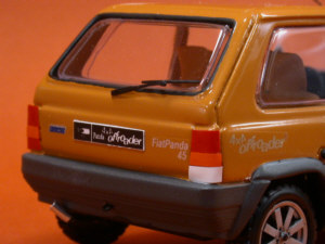 Salone di Torino パンダがいかに多目的車として役立つか、 そのコンセプトを示す為に作られたのが"オフローダー"である。 FWDから4WD化しており、イタルデザインで開発したこの方法は、 比較的簡単でしかも低コストに4WDシステムを取り入れることができた。 量産パンダ45のボディをそのまま利用した"オフローダー"のエクステリアの変更は、 フロントグリルのスリットが大きくなったのみ。