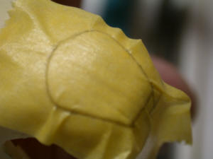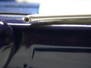 ![]() 楊枝の先で内枠まで接着剤を湿布 |
