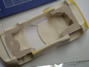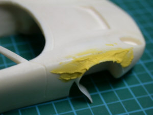 ![]() ポリエステルパテで大きな凹みを埋めます |