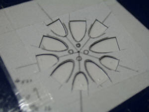 ![]() デザインナイフで切り出します |
