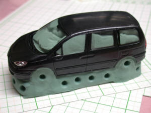 ![]() いつもの粘土埋め、パーティングラインを 考えます |