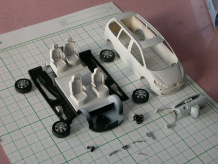 ![]() 仮組みの内装 |