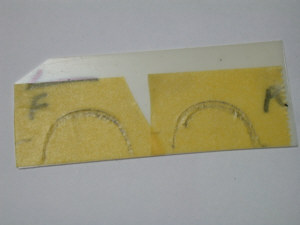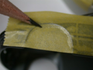 ![]() テープで型紙 |