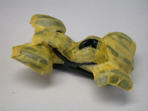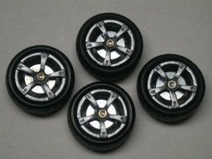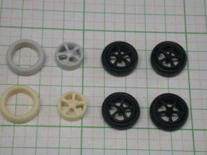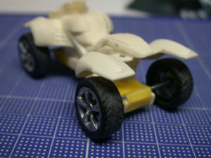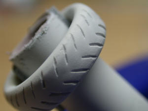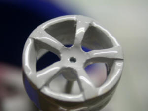 ![]() タイヤホイールをエポキシ接着剤で固定 |