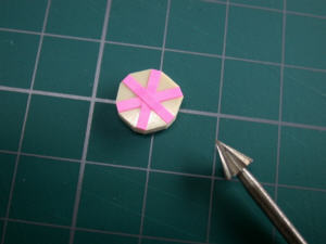 ![]() レジンの上に貼り削ると |