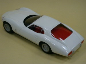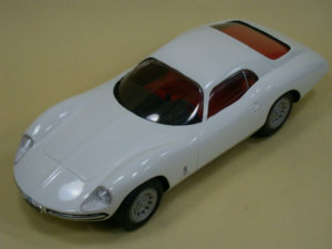 1965 おそらくベルトーネ・ボディのジュリアSSの後継車を狙ったもの フロントエンジンの2シータークーペで空力と実用性のぎりぎりの接点を追求 ウインドシールドの曲面を限界まで深くして、バーズアイ・ビューても理想的な流線形になっている。