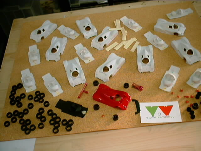 アルファロメオGr-Cカーのパーツとシリコン型、ホイールは赤レジンです。