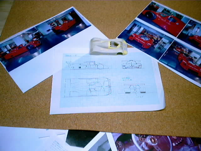 方眼紙に1/43の図面を引き、それに合わせて作りこみます。