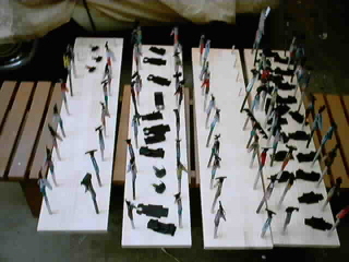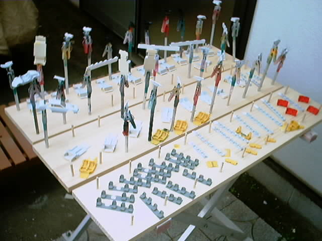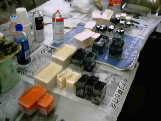 ![]() 各パーツを分類してから取りつけられる物は接着しました。 シート等は既についてます。上にあるボディは明日、全てサフェーサーを吹きます。 一応、スケジュールどうりに運んでいます。 |