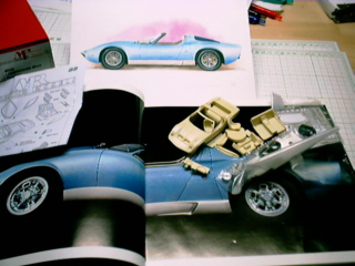 ![]() 謎の多い車"J"の制作はランボ研究家の方の 意見を頂きました。 テスト仕様を制作します、色の謎が説けるのか? これで、ボブ・ウォレス氏制作の3台が揃います。 |