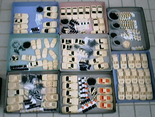 車種別に分別していたパーツを今日から塗装工程に入ったので、