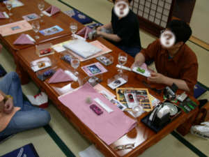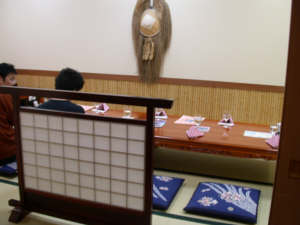 ![]() 貸切の和室、既に怪しい2名が・・・。 |