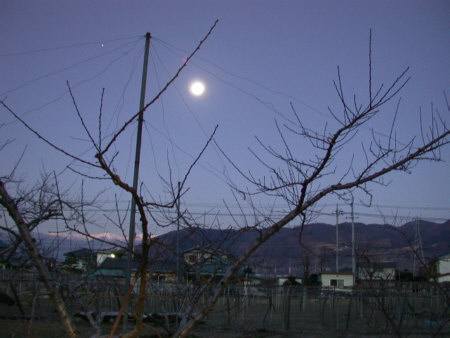 日の出前の西の空には月がまだ輝いてます