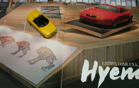 1/1の赤いハイエナはプロトタイプ、1/43黄色のモデルはイメージスケッチのモデル。