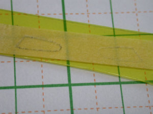 ![]() ヘッドライトカバーは平面なので テープにトレースしてから |