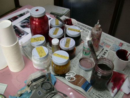 ![]() こんな状態で色を作ってます、色がドンピシャで決まったときは、 気持ち良いですよ・・・・ |