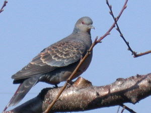 春を告げるキジバトが飛来、裏の桃の枝で一休み