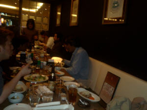イタリアンのレストラン、込んでいたけど幹事のLED君が席を確保。