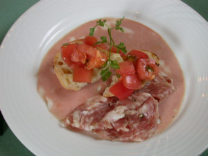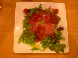 ![]() ボロー二ャハムとサラミのブルスケッタ |
