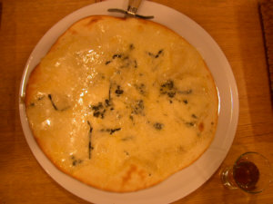 近所のイタリアンでイベリコ豚の燻製と生ハム、ゴルゴンゾーラ・ピッツァにハマグリぺペロン・・・・・