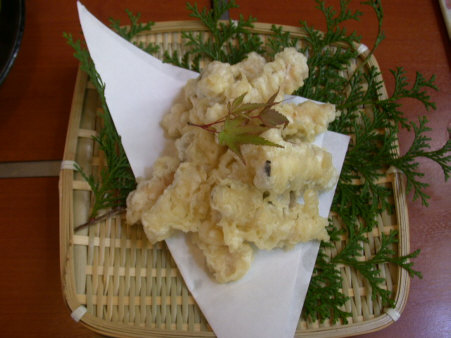 ランチは松茸の天婦羅と蕎麦、うまいっすw
