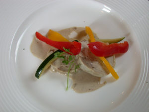 ![]() キャビアとフォアグラソースの武石鶏ロール |