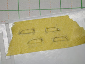 付属の塩ビ窓の内側にボンド社の木工エポキシパテを隙間なく入れて、常温で硬化させます。