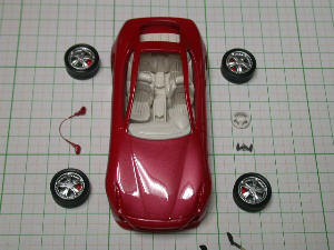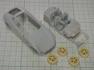 ホイールはタイヤに接着して完成、その他は傷をチェックした後にポリパテで修正後に下地クリームを吹く予定。