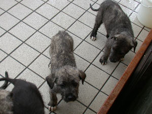IWH(アイリッシュ・ウルフハウンド)の子犬を見てきましたょ ボサボサ毛の末っ子は、情けない顔した男の子です。 この子が成犬時(四年後)には体高(肩まで)86cm、体重は60キロ以上になるそうです。 育ててみたいが相当の覚悟が必要だ・・・・。 |