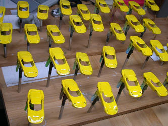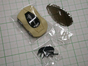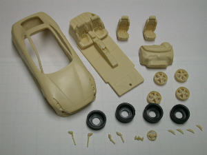 シリコンに型を取るために、ウレタンサフをコートした。キャストをすればキットの出来あがり、一台を完成サンプルとして作る予定。