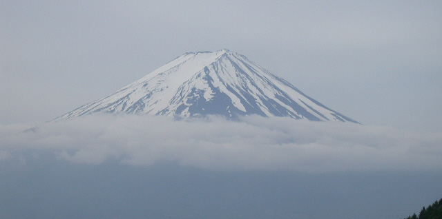 峠のトンネルを抜けると眼下には河口湖、久しぶりにこんな風景の富士山を拝めたので、クルマを止めて撮影。
