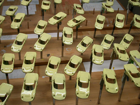 | すべてのパーツが揃い、仮組み状態。 これをマスター型にして、テストショットしたものをを完成させてみよう。。 今月はやらなければいけない仕事がたくさんある・・・・。 毎度のことであるがここまで何とか漕ぎ着けた、既に頭の中はFerrari575Zagatoのことを考えている。同時進行の予定だったが気持ちの切り替えが旨く出来なくなってきたような気がする。 |