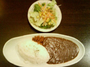 昼は駅前の野菜カレーセット(味はボンでした)、夜は鰹タタキ丼とタコスチップのサラダ