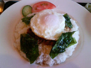 ランチはK氏と桜海老の掻揚げそば、夜はタイ風鳥ご飯。