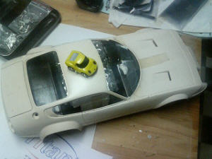 ブガッティEB110ベースのリンスピードの"シアン"はリヤの窓の大きさが違うことか判明しました、よって窓の製作・・・orz
