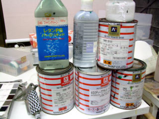 調色に必要なのは7種類、微妙な粒子と色味を調整していきます。色味だけではなく、メタリックやパールの粒子の質感を再現していきます。