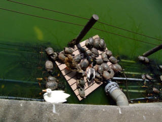 暖かい日差しに亀たちも冬眠から覚めて甲羅干し。動くものに反応するラウラは落ち着かない様子。
