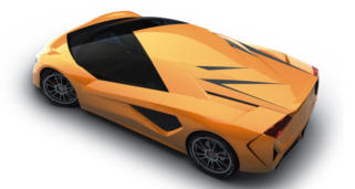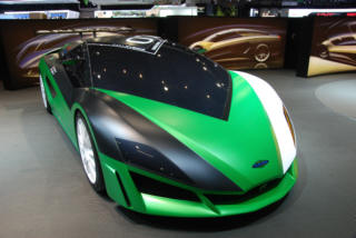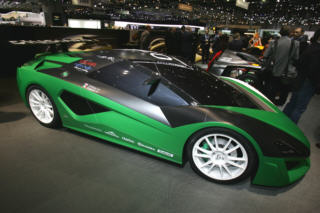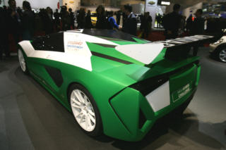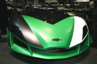 | 昨日、紹介のスパッロ氏率いるデザイン学校の生徒作品、SBARRO isatisです。シャシーはBMWのV12。 "isatis"は北極圏にすむ青狐の意。うん、確かにそんな顔付きです。 |
