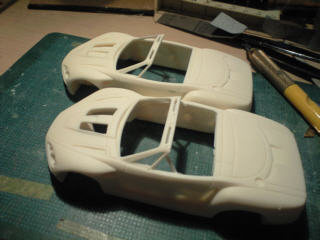 アストンは下地処理中です、アバルトはパーツの組み立て作業に入りました。
