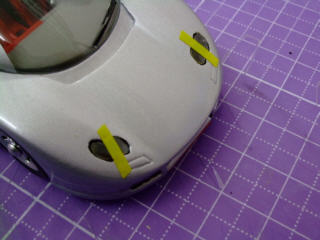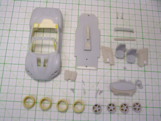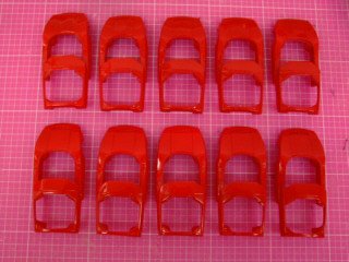 | アバルトを始めます。本当は完成しているはずだったのですが・・・。下地処理をして一気にサフを拭いてみました。 | ||