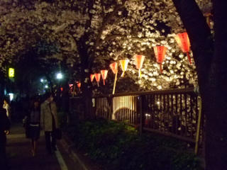 気温が上がり、一気に満開夜桜見物に、目黒川へ