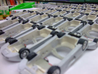| 異型瓢箪型に切り出さなければいけない・・・一台に2枚で40台。トータル80枚を8時間かけて切り出しました。大変でしたが、出来てしまうと普通www 行動を起こさないと、先には進めません。 |