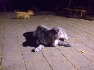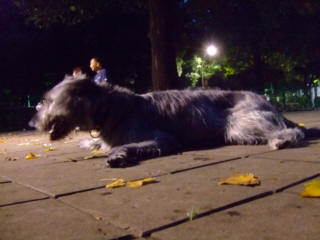 | 夕方からは久しぶりの星空、いつもの駒沢ランへ・・体温調節はお腹を冷やすことでしかできないラウラは長い脚を広げてコンクリートに這いつくばります。 | ||