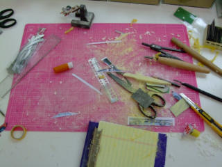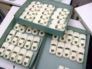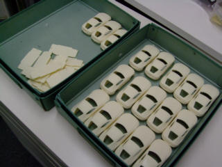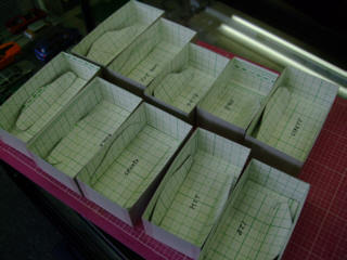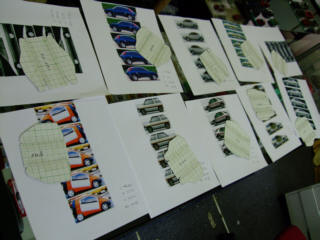 | 画像を見ながら、基本のラインを見つけて、トレースしていきます。 数台まとめての制作利点は、同じ作業のリピートは手が慣れてくることです。 一台目より6台目の方が効率よく進みます。 |