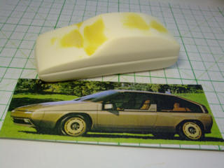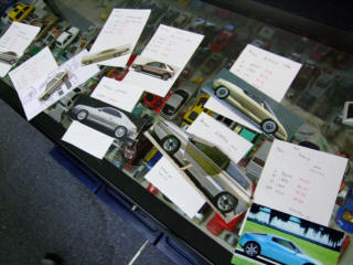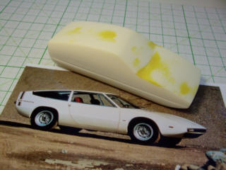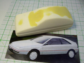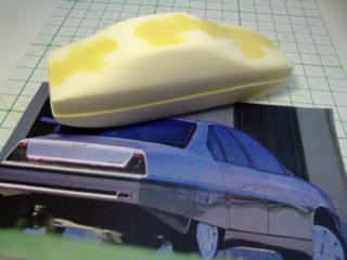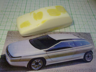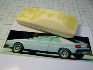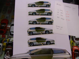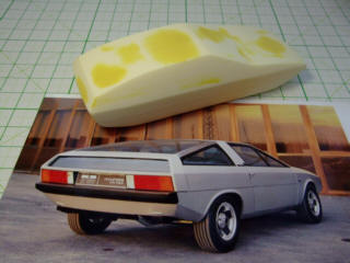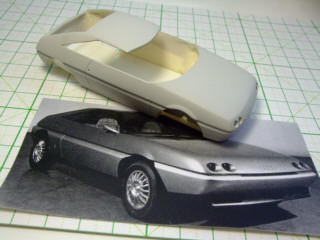 | 夕方からは、原型作りの時間です。"イタルデザイン"のウエッジスタイル・ボディを5台とベルトーネのAREAをww | ||
